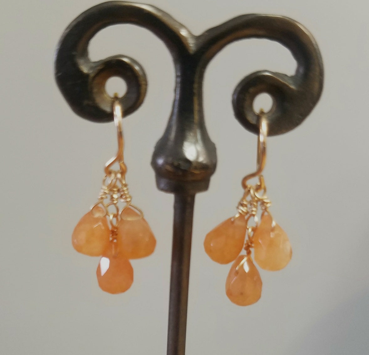 Three faceted Carnelian hanging on a small ear wire. Gold filled. Length 1 inch.