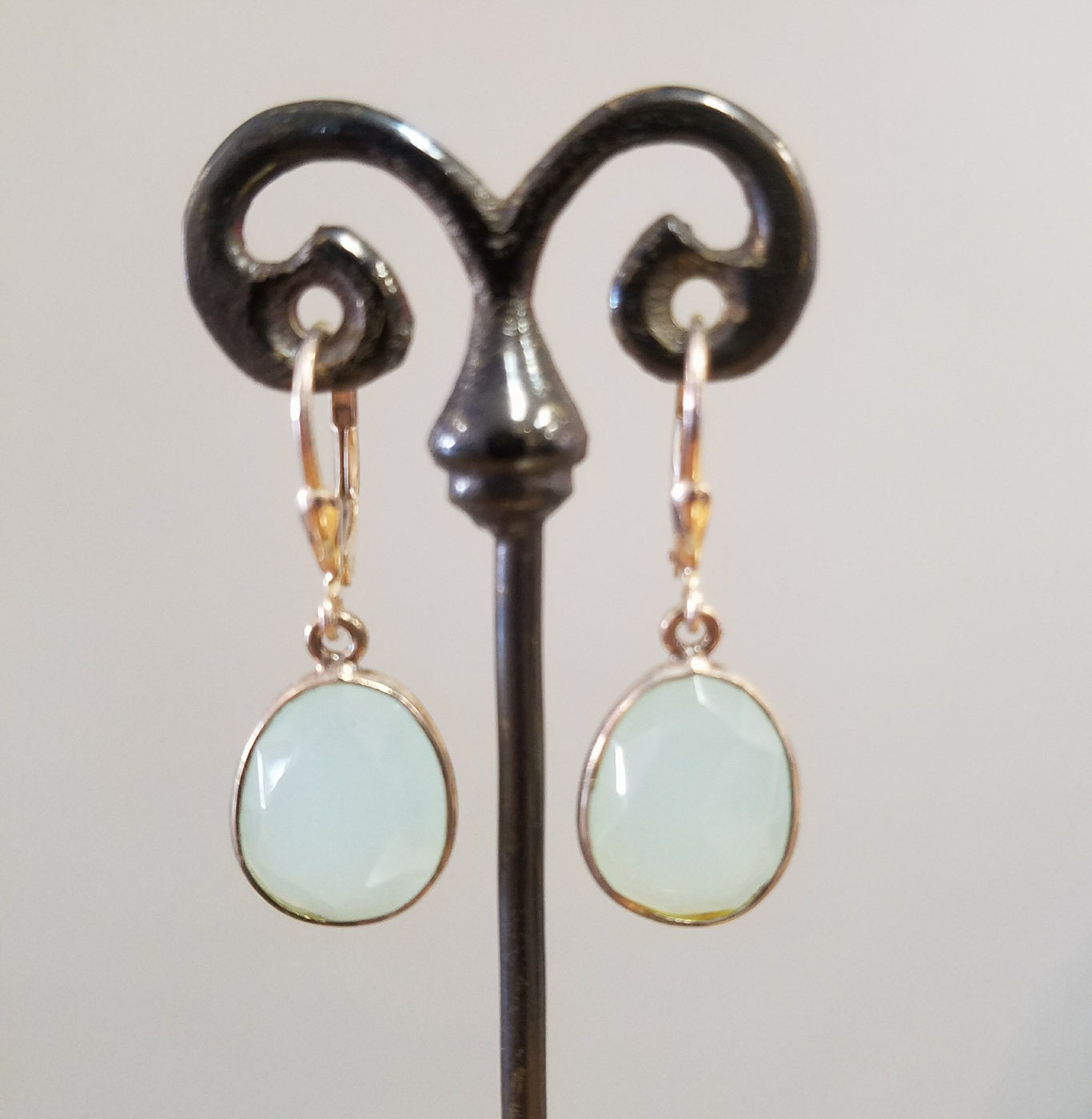 Light Calcedoney framed with sterling silver. Hanging on lever backs. Total length 1 1/4 inches